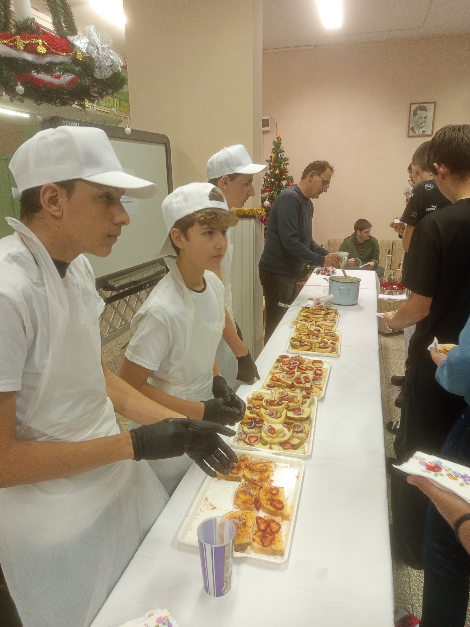 A kollégisták ismét összegyűltek egy jó hangulatú, közös lakomára, ahol illatos tea és finom kacsazsíros kenyerek várták az éhes diákokat. A hangulat remek volt, a beszélgetések pörögtek, és minden elfogyott a buli végére!