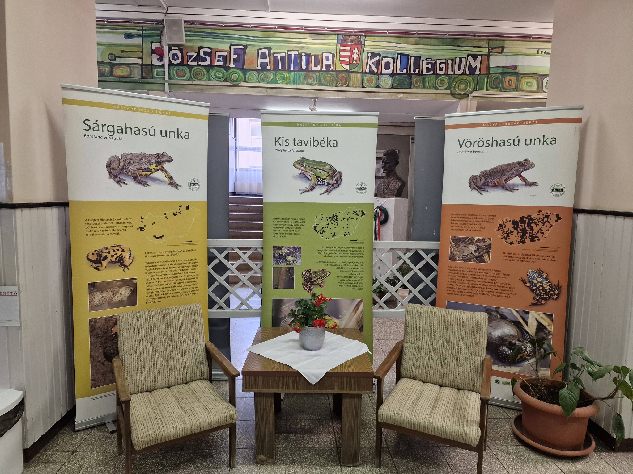 Magyarország békái költöztek be a JAK aulájába a Fenntarthatósági Témahét alkalmával, a Magyar Madártani és Természetvédelmi Egyesület jóvoltából. A kiállítás a témahét ideje alatt, azaz 2026. április 20-tól 26-ig tekinthető meg az aulában. ![]()