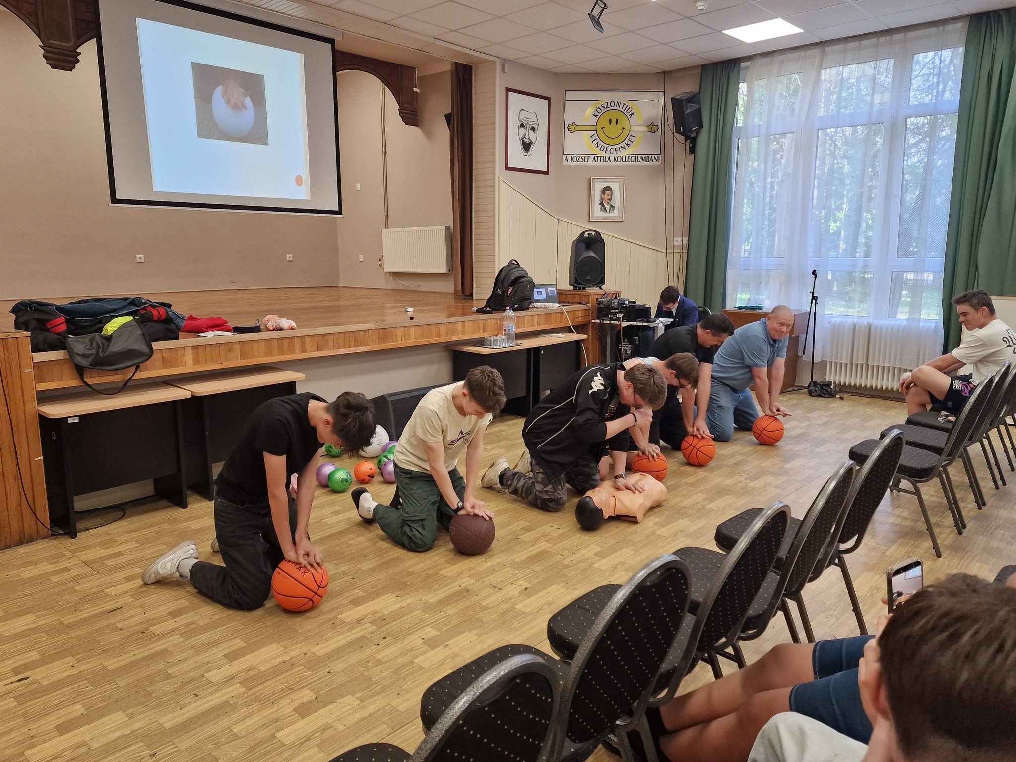 Az újraélesztés alapjait és a defibrillátor használatát tanulták meg a JAK diákjai Klupács Péter mentőtechikus vezetésével. A szakember hangsúlyozta, hogy merjünk cselekedni, ha bajt látunk, hiszen az első néhány perc sorsdöntő lehet. Az előadás nemcsak a fizikai életmentésről szólt, hanem az egymásra való odafigyelésről és a segítségnyújtás fontosságáról is. Hálásan köszönjük Klupács Péter! ![]()