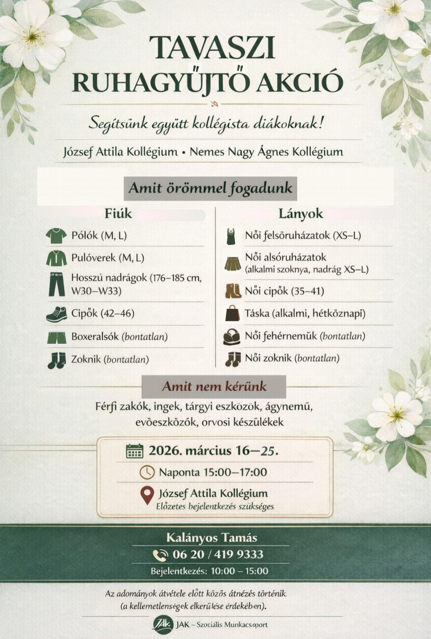 Névadónk, József Attila szellemiségében, a költészet napjához kapcsolódóan április közepén mindig egy izgalmas programsorozattal várjuk a kollégium lakóit és a középiskolásokat. A JAK-napok nemcsak a sportról vagy a versenyről, hanem a művészetről, a közös időtöltésről és az ünneplésről is szól. A célunk, hogy a JAK 250 fős kollégiumi közössége még szorosabbá váljon, miközben méltó módon tisztelgünk a 20. századi magyar irodalom egyik legnagyobb lírikusa előtt. Gyere te is! Csatlakozz!