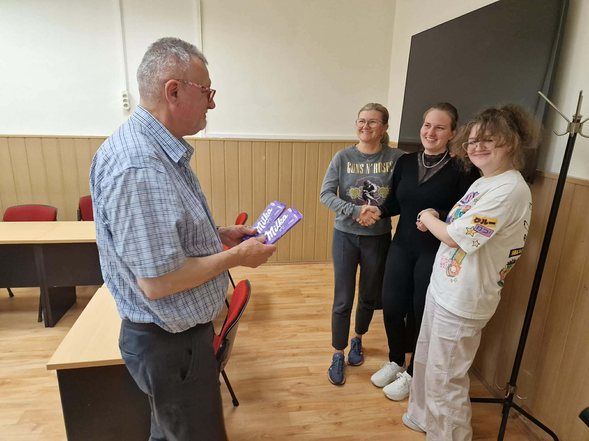 Március 17-én, kedden este megtartottuk a végzős kollégista diákjaink búcsúműsorát, amelyen minden diákunknak ünnepélyesen is feltűztük a kollégium portréját ábrázoló kitűzőt. A végzős diákok egyik csoportja kvíz kérdéseket állított össze, amely során játékos formában fogalmaztak meg feladatokat a kollégiumi élet vonatkozásában. A végzősök másik két csoportja ének és tánc produkcióval búcsúzott el a Nemes Nagy Ágnes Kollégium épületétől.